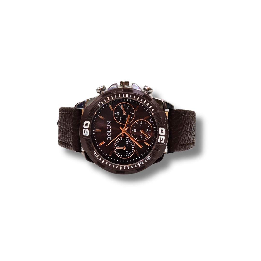 Elevate your style with the Bolun Women’s Watch, featuring a timeless round dial and a rich dark brown strap. This elegant timepiece blends classic design with versatile appeal, making it the perfect accessory for any occasion.